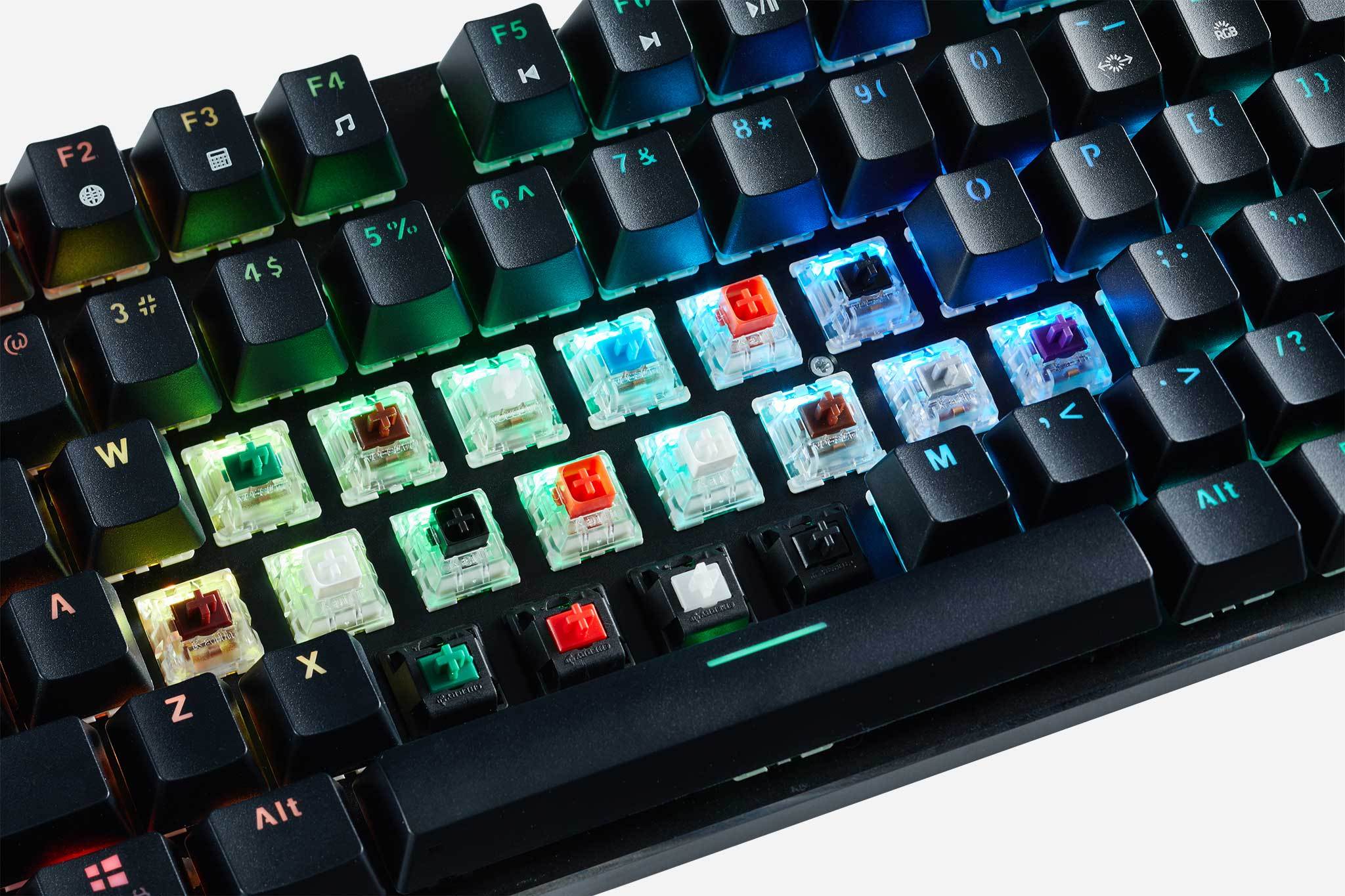 Easily remove keycaps & switches for your entire keyboard. Use any combo and brand of a compatible MX switch.